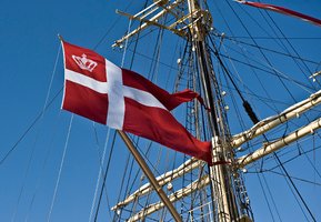 Kongen rejser sig op, ser ind på havnen og spørger: ”Sig mig engang min gode Sophus, hvorfor flager vi med studsflag og ikke med splitflag på min havn?”