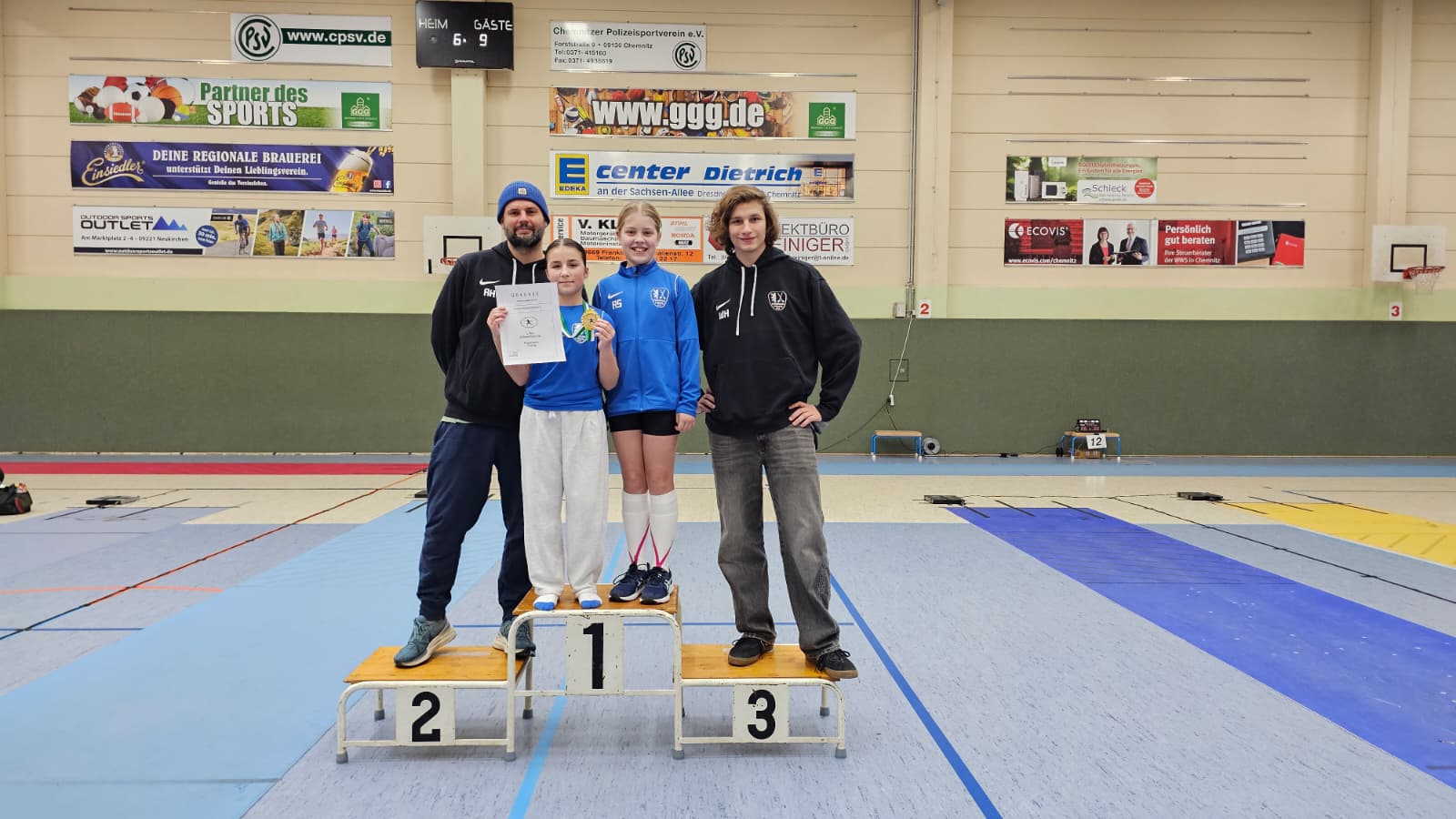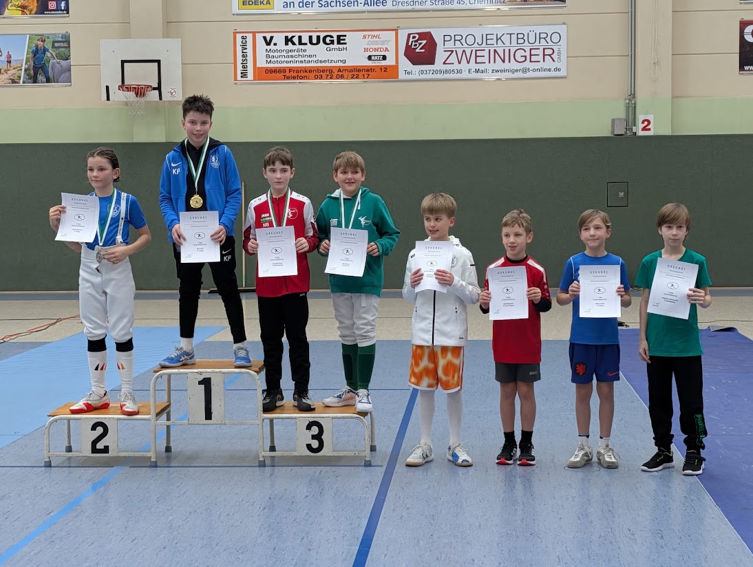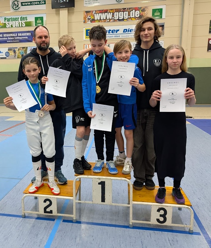 Im Florett erkämpften sich Karyna und Karl die Goldmedaille, Matteo gewann Silber und Donny holte mit Platz 7 eine weitere Top 8 Platzierung. Auch Johann, Erwin und Frido konnten sich im starken Starterfeld mit Platz 22, 24 und 26 gut gegen den älteren Jahrgang durchsetzen. Ann-Sophie (16. Platz) und Lena (19. Platz) bestritten ebenfalls einen soliden Wettkampf und sammelten wichtige Turniererfahrungen.