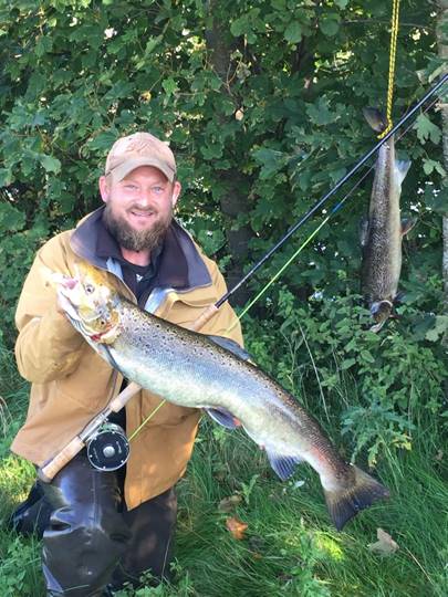 Det er hovedsageligt en spinde elv, men der er steder, hvor det går an med flue. Man kan se på kortet over Lagan på hjemmesiden(laholmslaxfiske.se), hvor der kan fiskes med flue, og hvor der kan fiskes med spin.