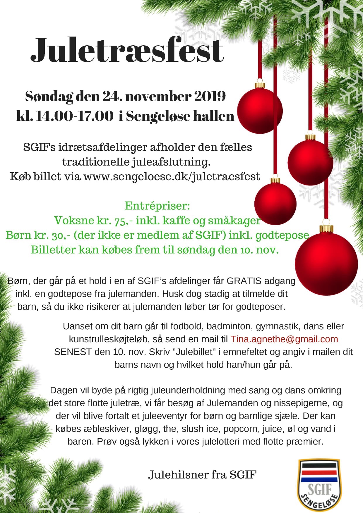 Ungdomsmedlemmer af SGIF Fodbold kan melde sig gratis til ved at sende en mail til [email protected] med "Julebillet" i emnefeltet og i selve mailen skrive barnets navn og tilhørsforhold ("SGIF Fodbold, Holdnavn").