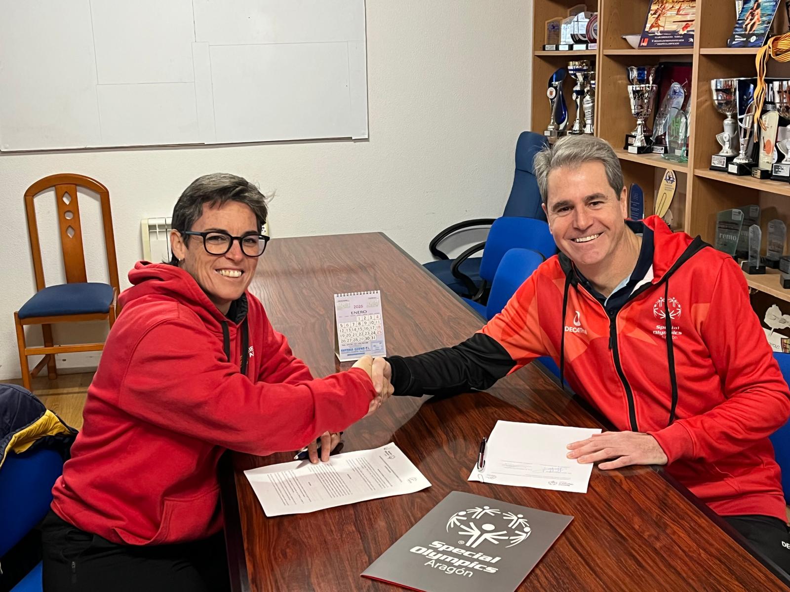El convenio ha sido firmado por la presidenta del Club Monkayak Hiberus, Selma Palacin, y el presidente de Special Olympics Aragón Guillermo Ramos, asistiendo al acto miembros de ambas juntas directivas.