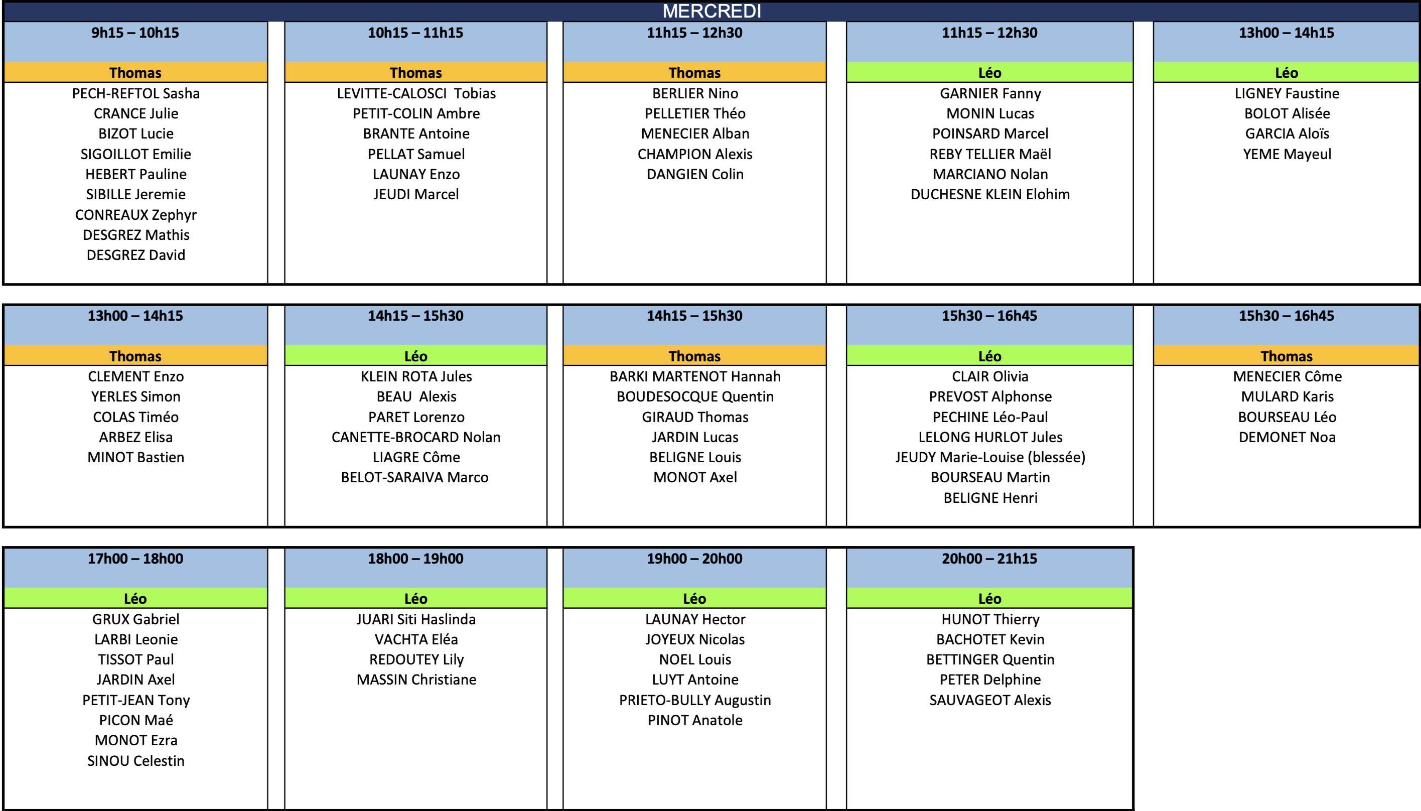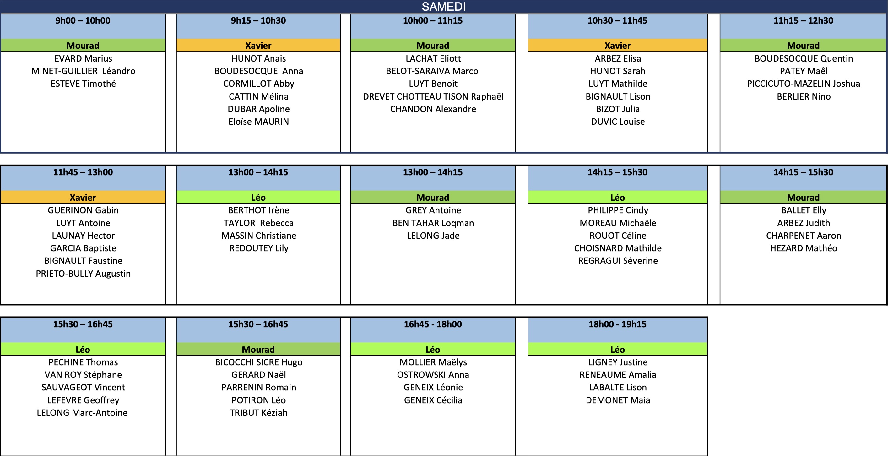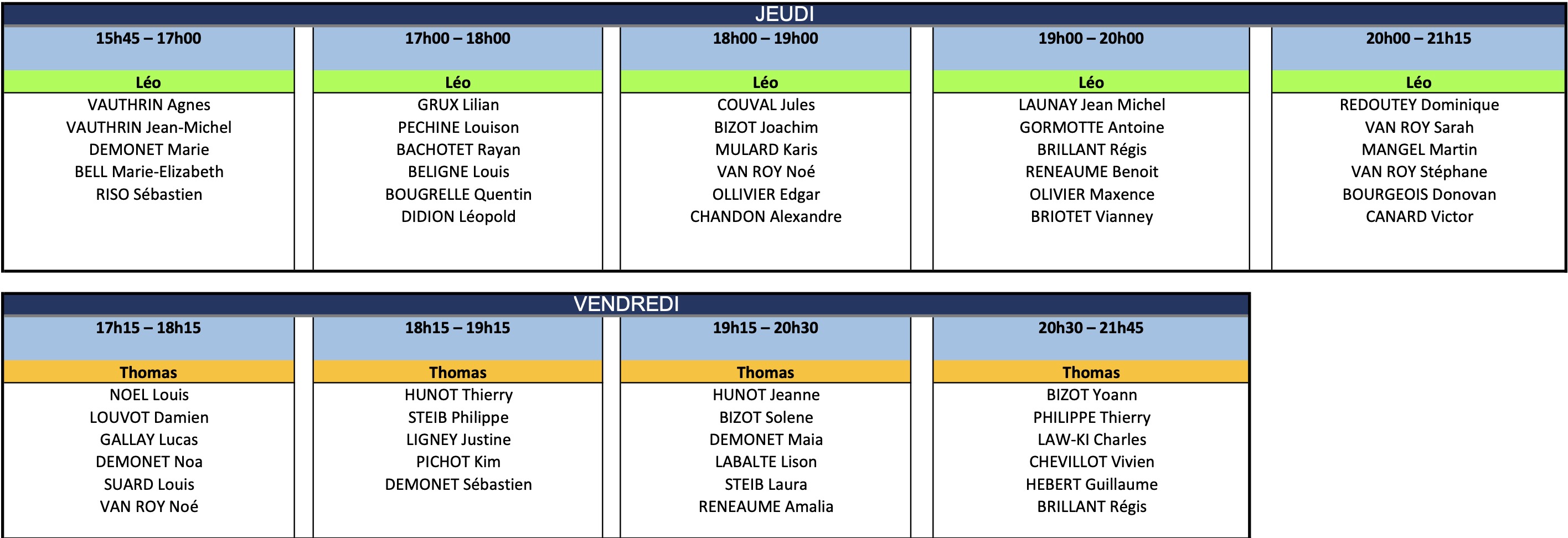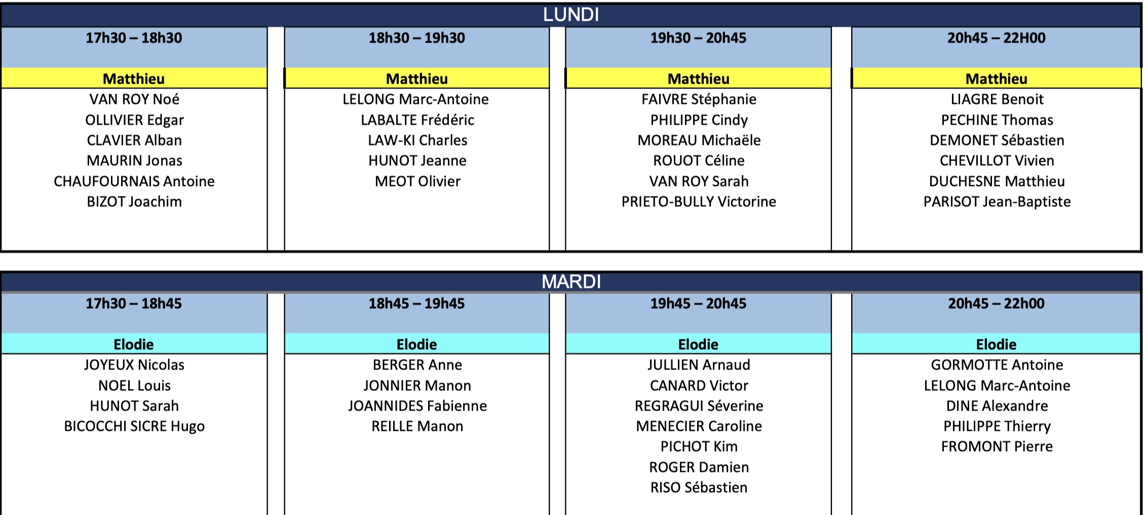 Vous trouverez ci-dessous les tableaux de répartition des cours :