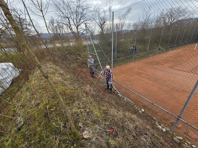Am vergangenen Samstag trafen sich sechs freiwillige Helfer um den Durchgang rund um Platz 5 und 6 wieder begehbar zu machen. Dank bestem Arbeitswetter und der tatkräftigen Unterstützung der Mitglieder konnten die Arbeiten innerhalb eines halben Tages erfolgreich abgeschlossen werden.