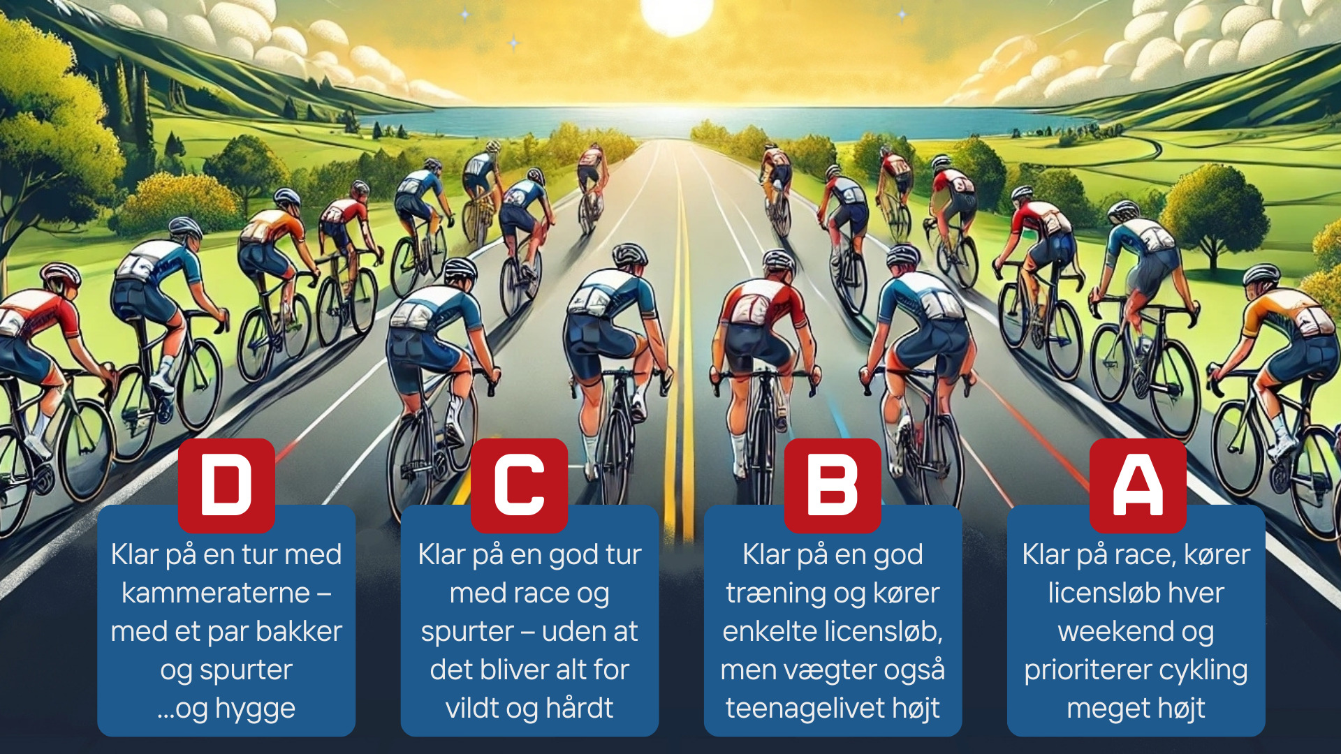 Med en god oplevelse mener vi, at man træner med nogle på cirka samme niveau - når det gælder cykelform og tilgang til cykling (er det hygge eller race :-))