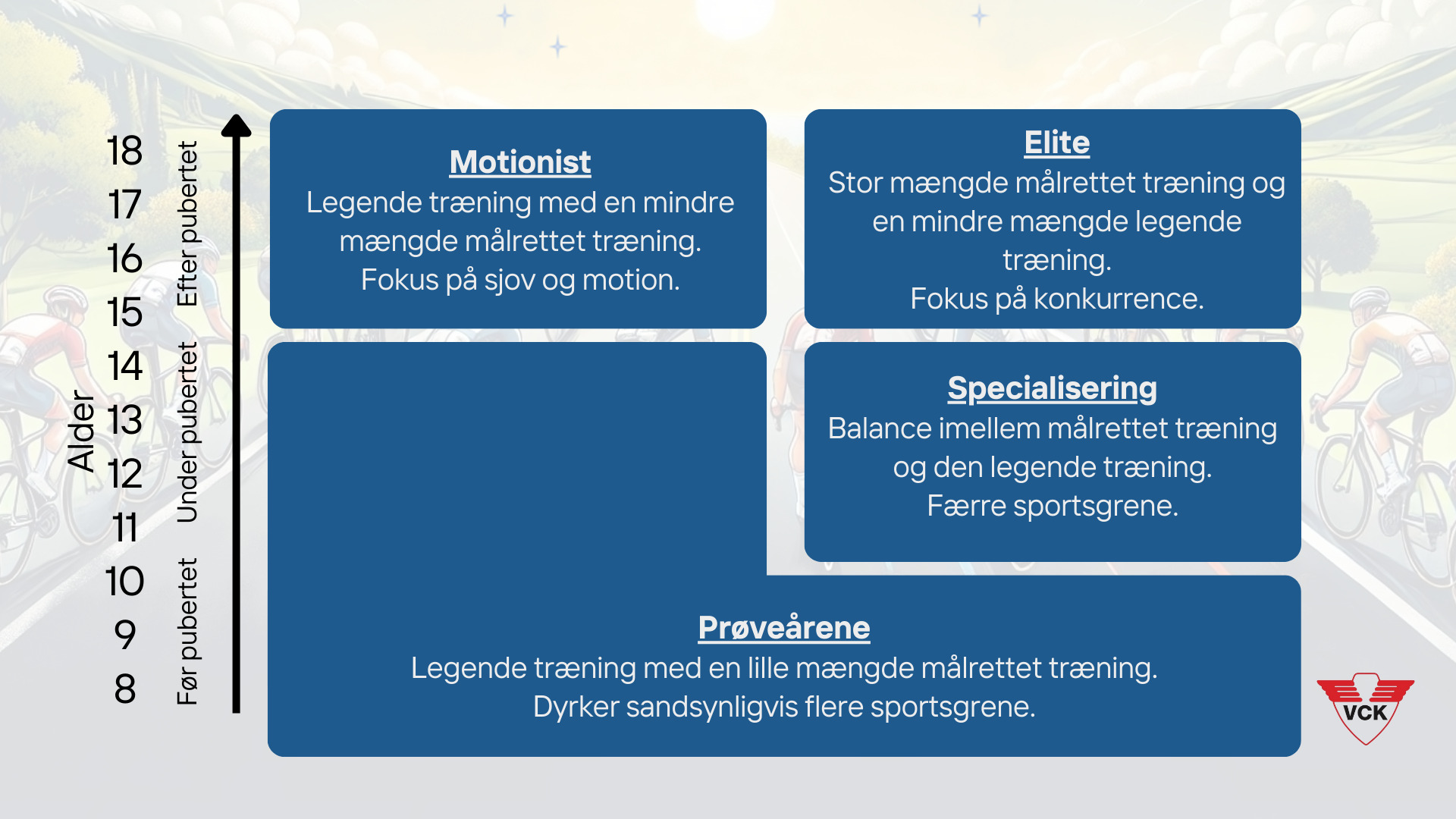 Desuden må alle meget gerne rykke ned eller op på "dagsbasis" - hvis man er lidt træt eller måske vil prøve sig af på et højere niveau.